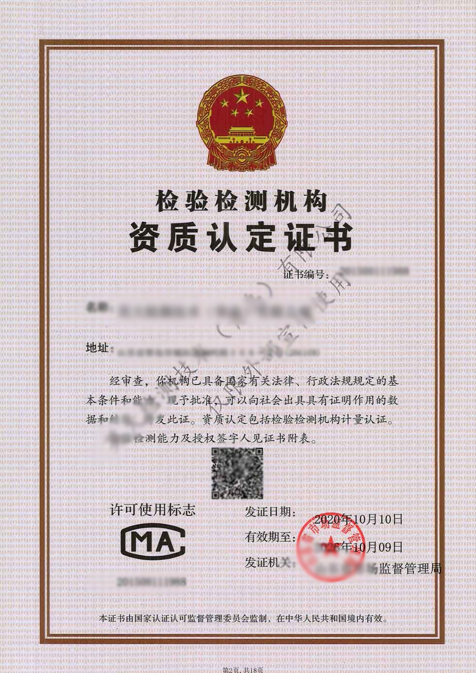 公司资质CMA