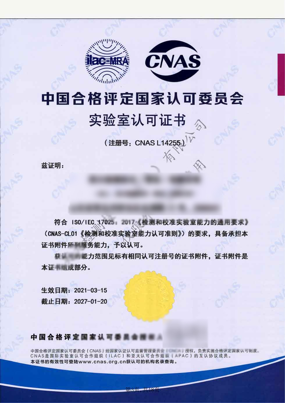 公司资质CNAS